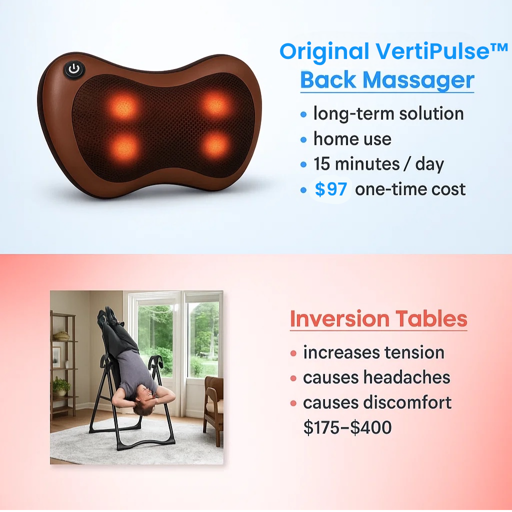 Just 15 minutes a day with the VertiPulse™e is designed to relieve tension, improve circulation, reduce inflammation, and ease pain caused by these issues. It works by combining vibration massage, heat therapy, and a gentle traction system that stretches your lower back at an optimal 26-degree angle, realigning your spine and restoring mobility.